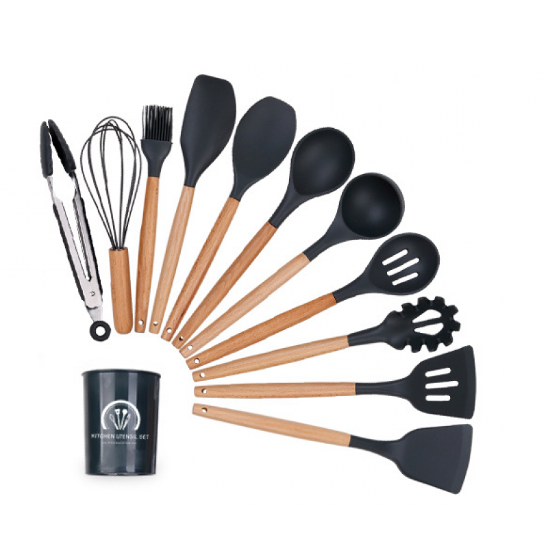 SAFE, BPA FREE, FOOD GRADE SILICONE, ODORLESS - The kitchen utensil set are made of high-quality food-grade silicone. BPA free. no harmful smell. The wooden handle feels comfortable and strong to hold, preventing heat transfer, so you don’t have to worry about scalding the chef’s hands.