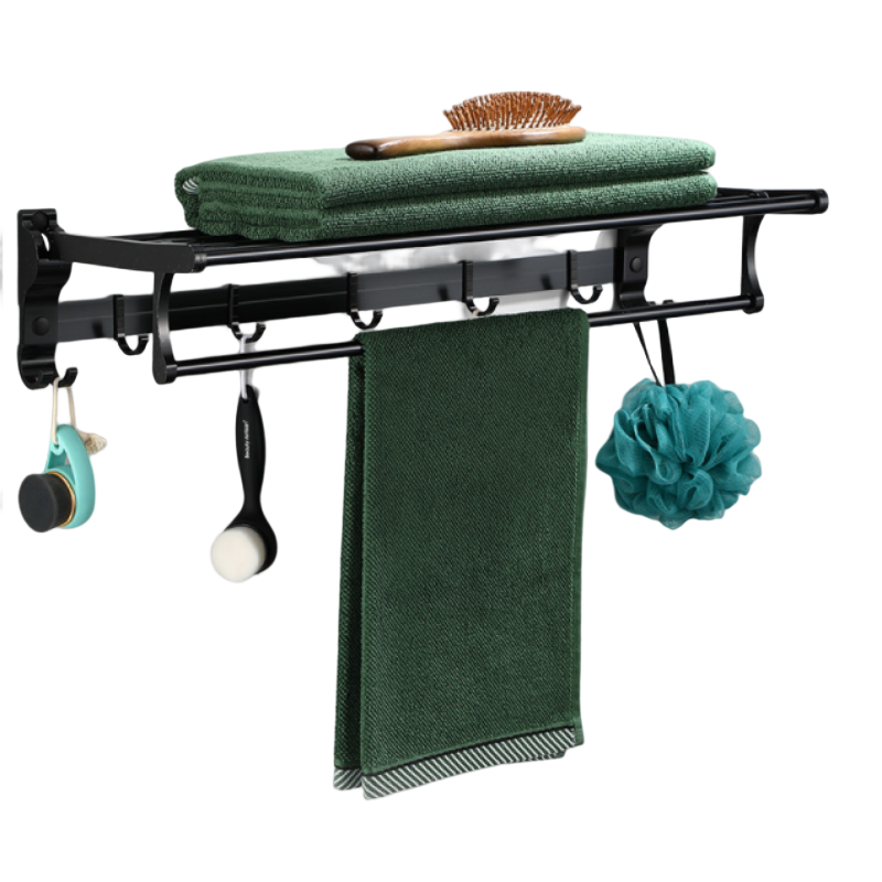 Aluminium Towel Rail Rack with Hooks 60cm no drilling