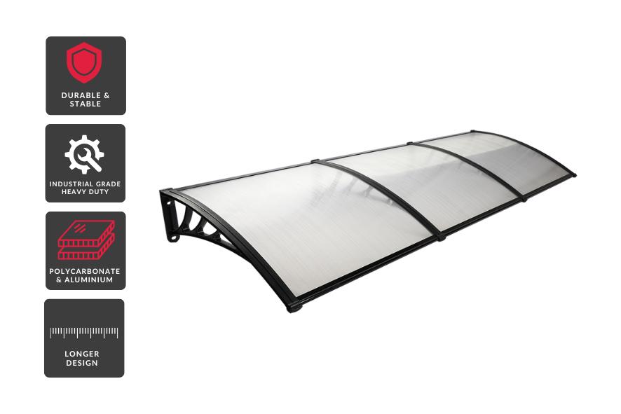 Crafted with a lightweight yet sturdy hollow sheet with the industrual standard at specific gravity weight: 1100 g/m2, our canopy awning is built to last, and resistant to corrosion and aging. The reliable PP wall bracket and aluminum fixing bar ensure durability. Rest assured, all the necessary installation hardware is included, making assembly a breeze.