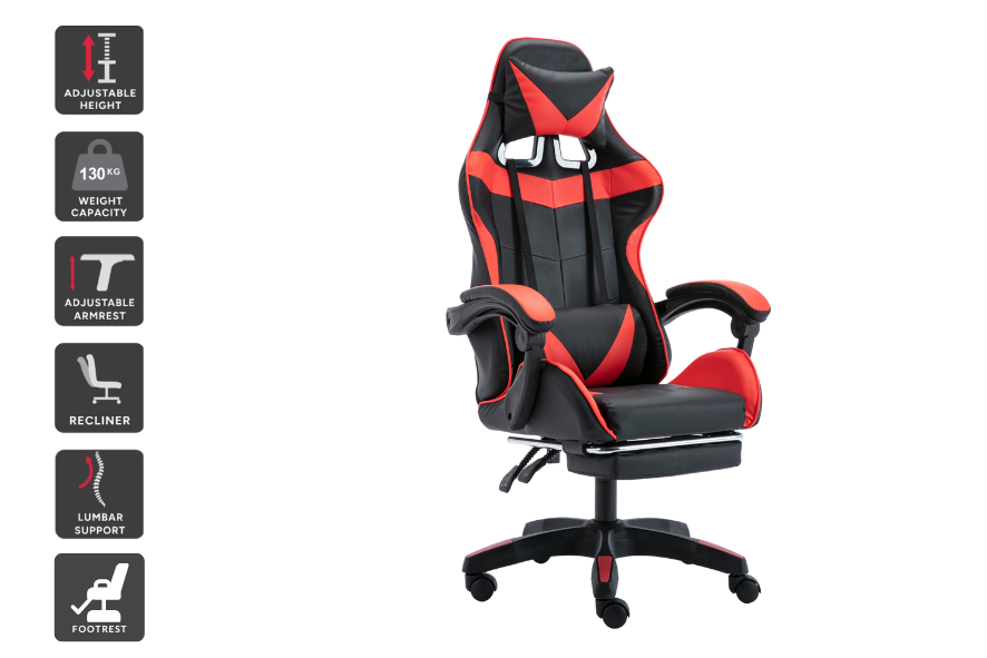 Gaming Office Chair with Headrest Footrest Back Support Red