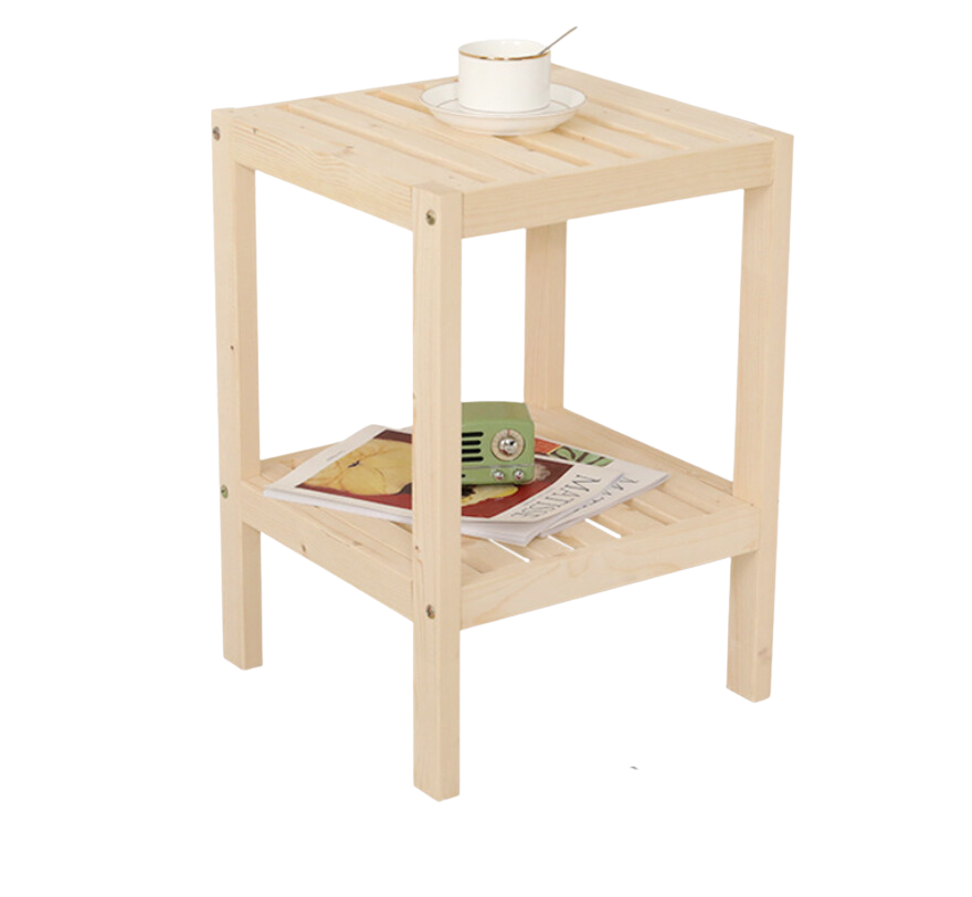 Dimension & Structure: 2 Tiers and Square Side Table-40(W)x40(D)x50(H) cm, Pure wood body with 4 stable legs and a hollow storage shelf.