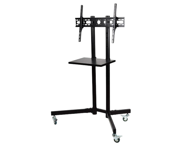 【HEIGHT ADJUSTABLE TV CART】Our rolling TV stand can be tilted up and down, height adjustable to provide the most comfortable viewing angle; The mobile TV cart comes with a sturdy media shelf to hold a laptop, DVD, or gaming devices.