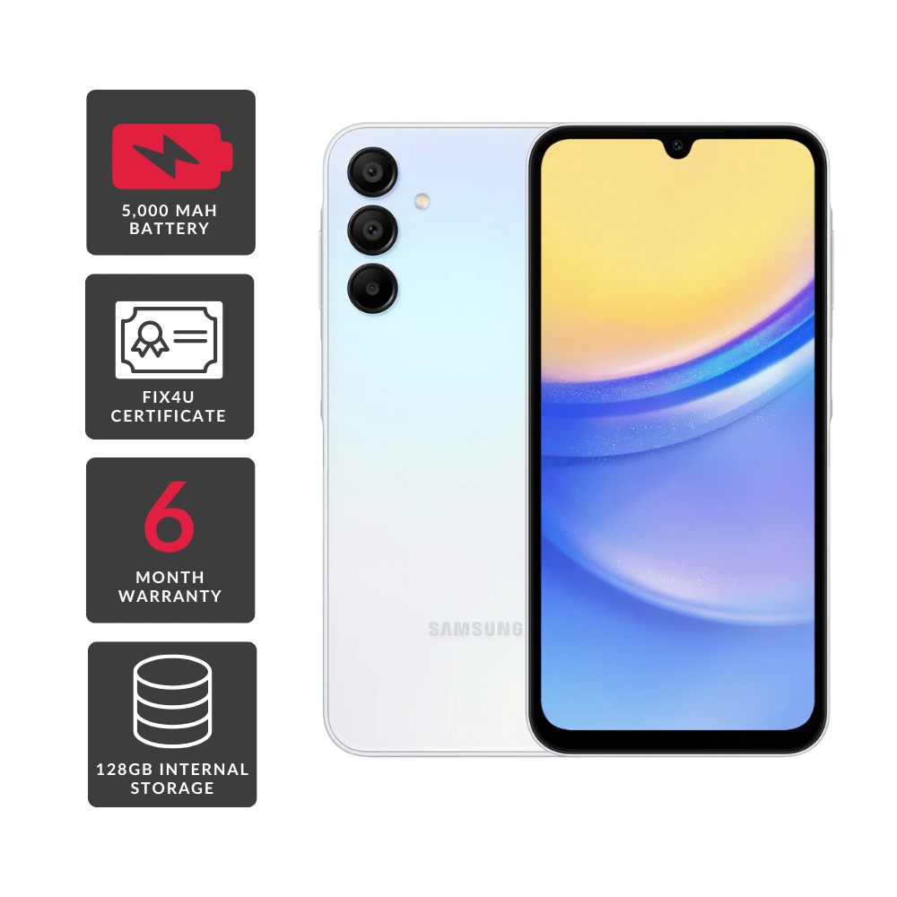 Never run out of battery with the Samsung Galaxy A15's 5,000mAh powerhouse, supporting you through your busiest days. Plus, with 128GB of internal storage and the option for up to 1TB via MicroSD, you can keep all your cherished memories and apps close at hand.