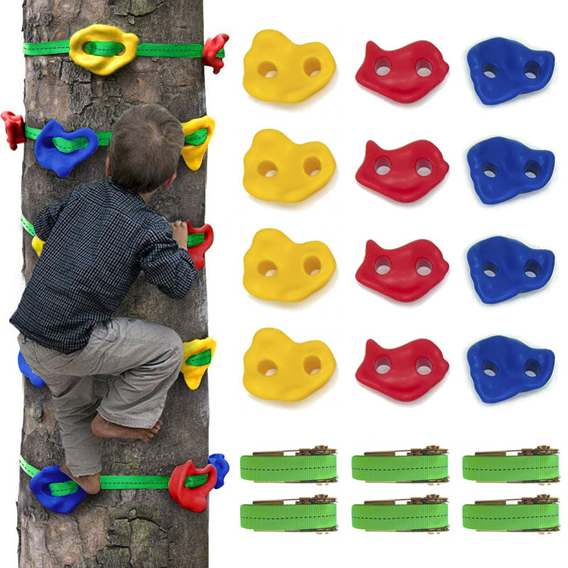 - Easy To Set Up & Disassembly: The kit includes 12 colourful climbing rocks and 3-meter ratchet tie-down straps that make assembly and disassembly a breeze with no need for other accessories or tools, and the grips can be snug to the tree safely